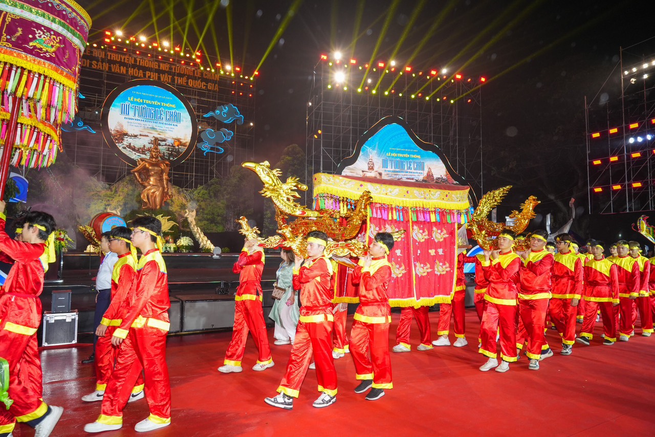 Lễ hội truyền thống Nữ tướng Lê Chân đã được công nhận là di sản văn hóa phi vật thể quốc gia vào năm 2016 và tổ chức hằng năm vào ngày mồng 7, mồng 8, mồng 9 tháng 02 âm lịch. Lễ hội truyền thống Nữ tướng Lê Chân là sự kiện được quận Lê Chân tổ chức hàng năm nhằm phát huy các nét đẹp văn hóa, nghi lễ truyền thống về thân thế, sự nghiệp, công lao to lớn của Nữ tướng Lê Chân - Người có công khai hoang, lập ấp dựng lên trang An Biên xưa, thành phố Hải Phòng ngày nay. Qua đó khơi dậy niềm tự hào tuyên truyền, giáo dục lịch sử, văn hóa, truyền thống “Uống nước nhớ nguồn” của dân tộc. Nữ tướng Lê Chân là võ tướng dưới thời Hai Bà Trưng, cùng với những thủ lĩnh anh hùng của cuộc khởi nghĩa Hai Bà Trưng, Bà đã tham gia đánh đuổi giặc Hán đô hộ và trở thành vị tướng có nhiều công lao, thể hiện tinh thần độc lập, ý thức tự chủ của dân tộc ta những năm đầu công nguyên. Với những công đức lớn lao của Nữ tướng Lê Chân - Thánh Chân công chúa, trải qua gần hai nghìn năm, bao biến thiên thăng trầm của lịch sử, người dân Hải Phòng đã lập đền thờ phụng, suy tôn bà lên bậc Thánh Mẫu, là thành hoàng của vùng đất ven biển, công đức của vị nữ tướng còn in đậm trong tâm trí người dân Hải Phòng, những di tích và những huyền thoại về bà vẫn được Nhân dân truyền tụng ghi nhớ. Nhớ đến công đức của Bà, từ xa xưa Nhân dân Hải Phòng và các vùng phụ cận tổ chức nhiều hoạt động lễ hội tại Đền Nghè, Đình An Biên... để bày tỏ lòng ngưỡng vọng và biết ơn một vị tướng tài ba, tâm phúc của Hai Bà Trưng. Những giá trị tinh thần đó trải qua thời gian được kết tinh lại thành giá trị văn hóa vô giá của dân tộc nói chung và của người dân Hải Phòng nói riêng, tiếp nối lưu truyền từ đời này qua đời khác, từ thế hệ này qua thế hệ khác.