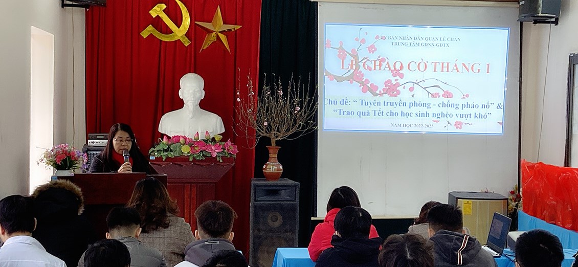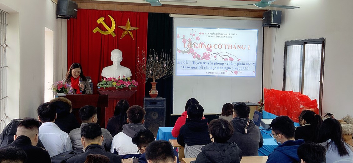 Chiều ngày thứ 2 (16/01/2023), Trung tâm GDNN-GDTX Quận Lê chân long trọng tổ chức lễ chào đầu tháng 1.